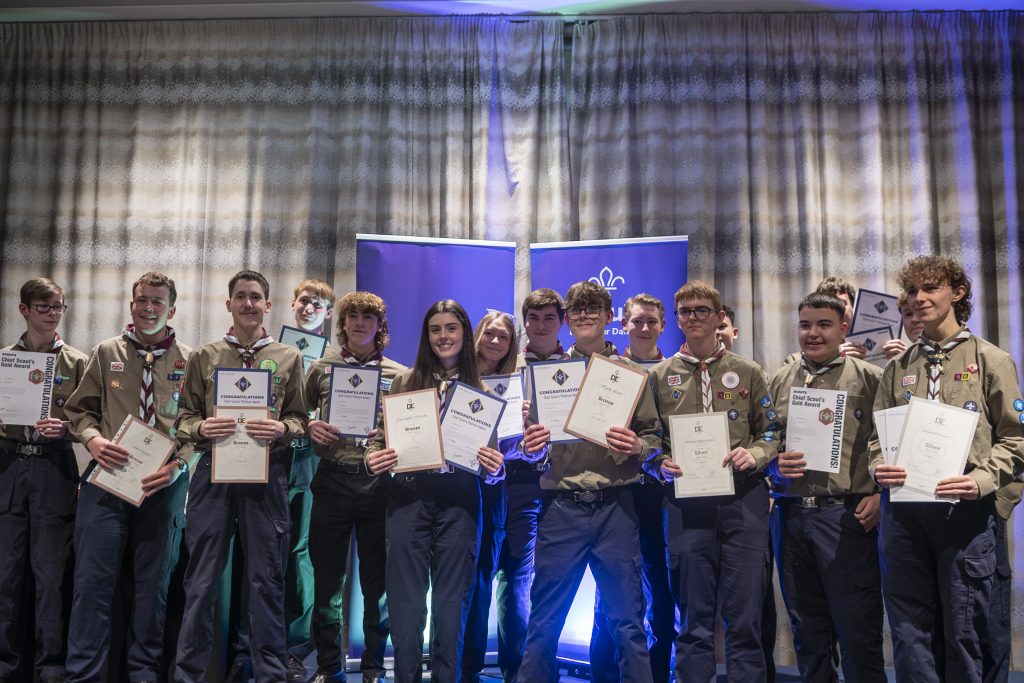 The afternoon recognised young people who achieved the full range of Chief Scout’s Awards, beginning with the Acorn Award in Squirrels and progressing through the Bronze, Silver and Gold Awards and on to the Chief Scout’s Platinum and Chief Scout’s Diamond Awards. Senior achievements were also celebrated, including Duke of Edinburgh Bronze, Silver and Gold certificates and the Young Leader Award. The ceremony also included the presentation of four Kings Scout Awards to Samuel Finn, John Micklethwaite, Evie Booth and Grace Hallgate.